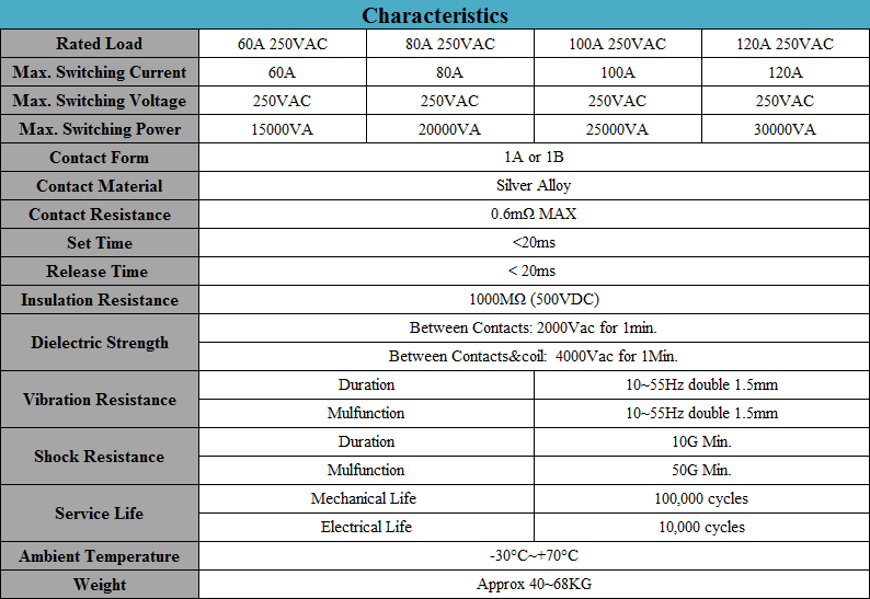 ? 60A~120A Contact Switching Capability